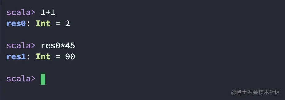 在Scala命令行内,输入Scala代码,解释器会直接返回结果