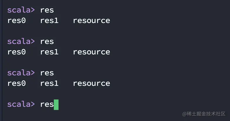 scala的命令行也有自动补全功能,使用起来还是比较方便的