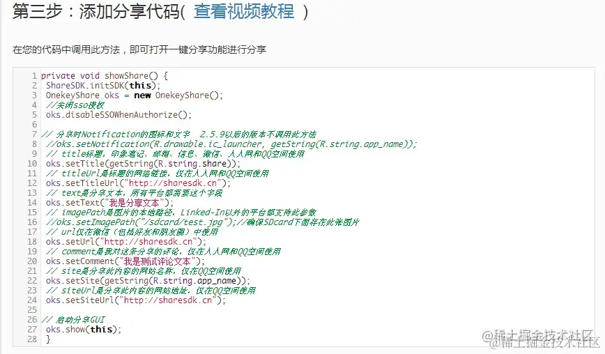 3.添加分享代码