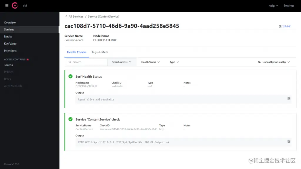 启动服务,可以看到服务已经成功添加到Consul中了。