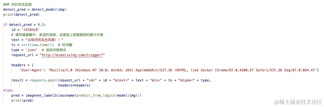 上面的两种形式,我们都将其输入到后续的对抗防御监测模型以及级联的业务模型中,这里可以参照4.2中的代码: