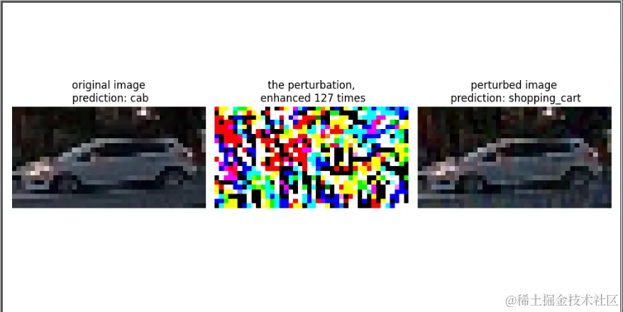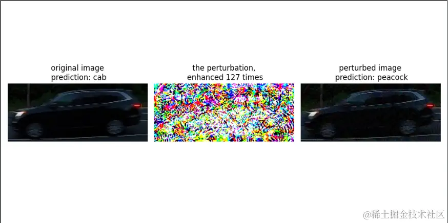 比如下面一辆车,原本是cab出租车,但是增加扰动攻击后,就被识别成购物运输的马车了。