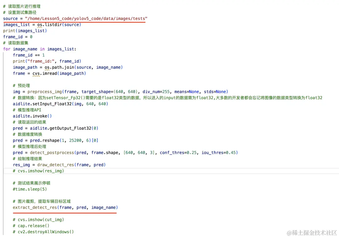 我们再理解一下模型推理,车辆目标提取代码: