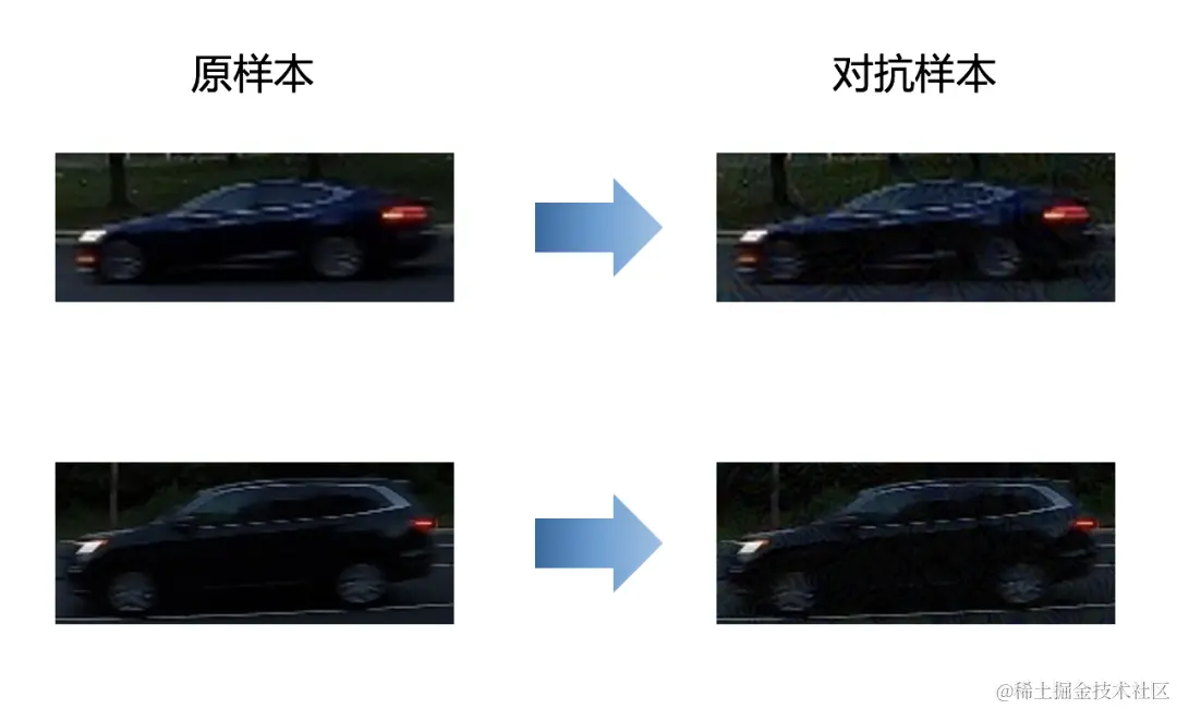 这时如果攻击者将干净的车辆框替换成含对抗扰动的对抗样本,可能导致后续任务出现误判,比如原本是一辆卡车,需要判断是否超载,但是出现误判,变成了一辆小轿车,从而导致严重的安全风险。
