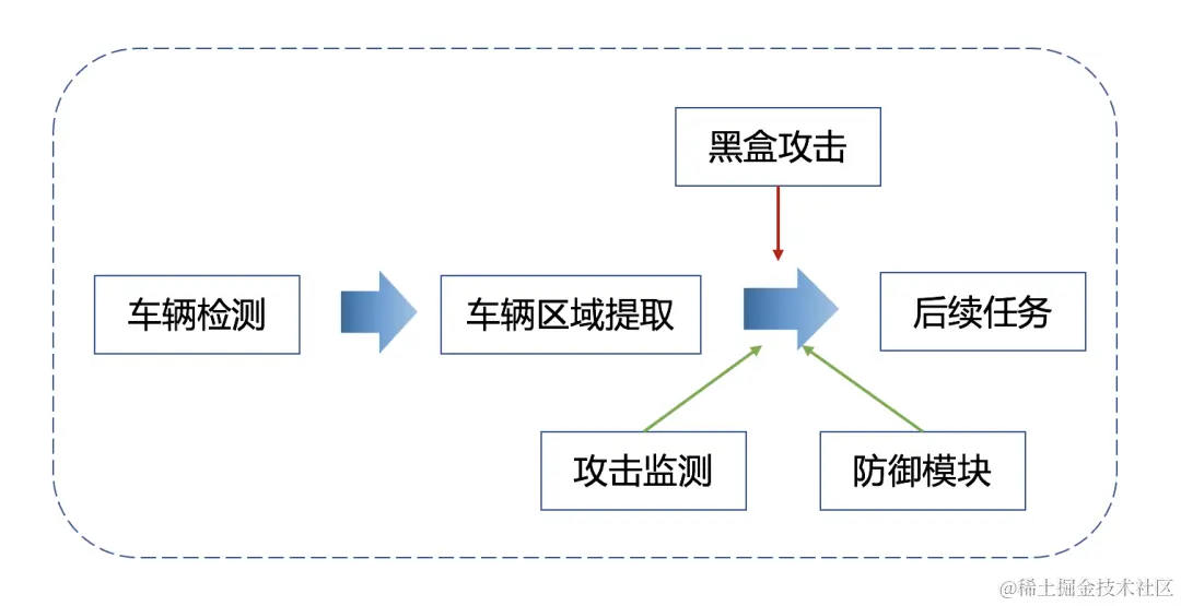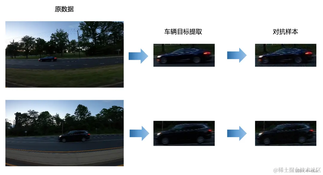 比如在智慧交通场景中,对每一个车辆进行提取,再进入对抗攻击监督模型判断是正常的图片,还是具有安全风险的图片。