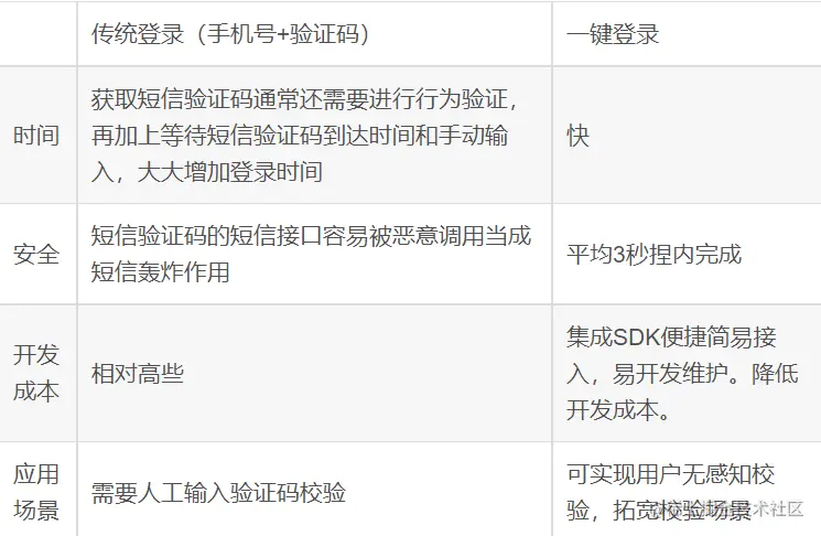 一键登录和传统登录的对比: