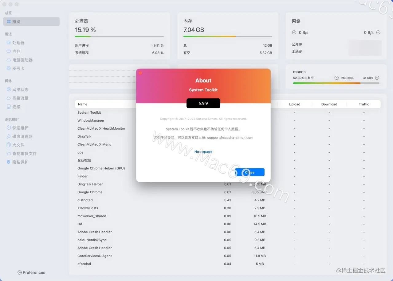 System Toolkit是一款专为macOS设计的全功能信息和维护应用程序。跟踪所有重要的系统信息,并快速删除Mac上的所有临时文件以释放磁盘空间。