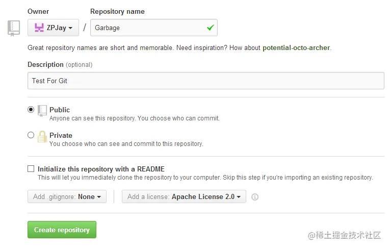 注册完,跳转到如下页面,选择仓库购买方式(私有仓库,别人不可以访问,要权限),一般我们自己玩选Free:PS:对了,这时候你邮箱可能收到一封验证邮件,点下完成验证。