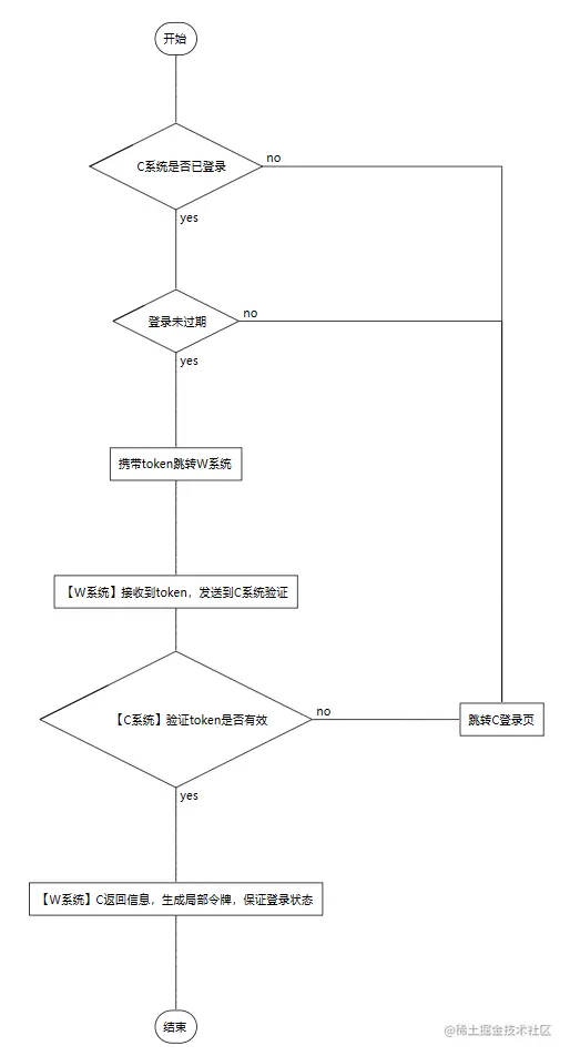 - 其中W系统不存在登录页面,必须要从C系统跳转展示。