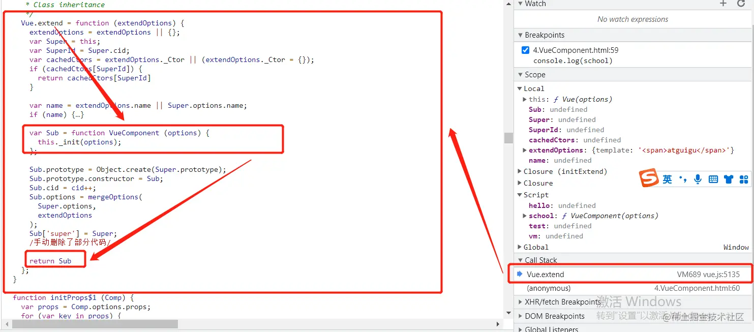 如图,正常情况下,VueComponent的隐式原型属性__proto__应该指向Object的原型对象,但是vue做了强制更改,使