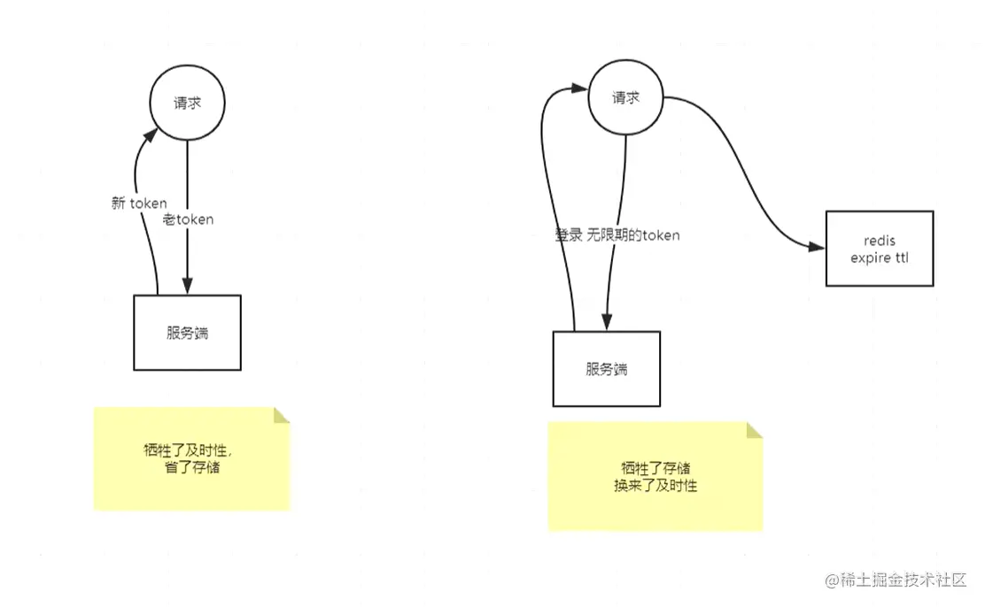 第一种创建一个新的token,相当于重置了token的时间,但是有可能另一个还没有过期