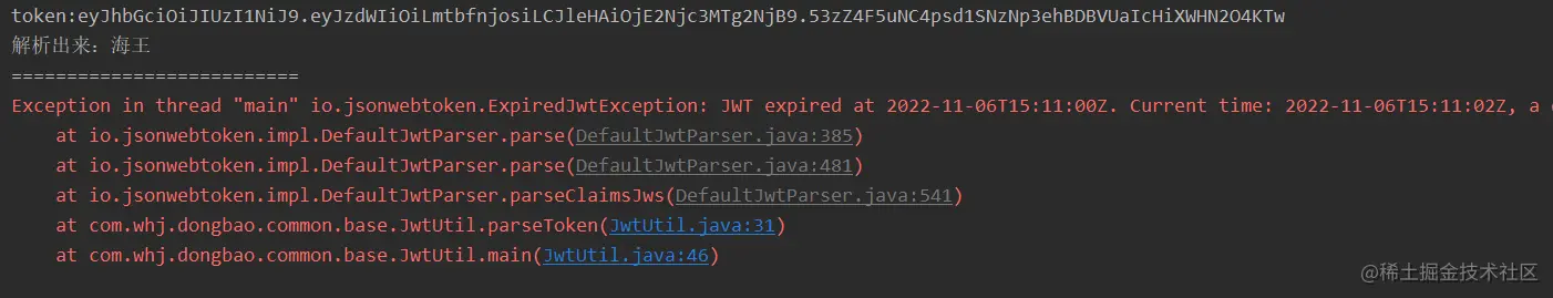 DecodedJWT verify = JWT.require(Algorithm.HMAC256(SIGN)).build().verify(token);