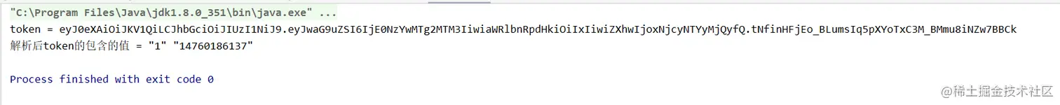 System.out.println("解析后token的包含的值 = " + tokenResult.getIdentity()+" "+tokenResult.getPhone());