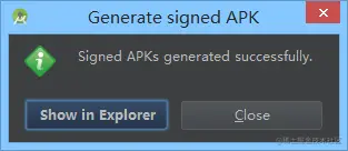 ⑥点击Finish稍等一会儿会出现下述提示,说明应用已经打包签名成功了: