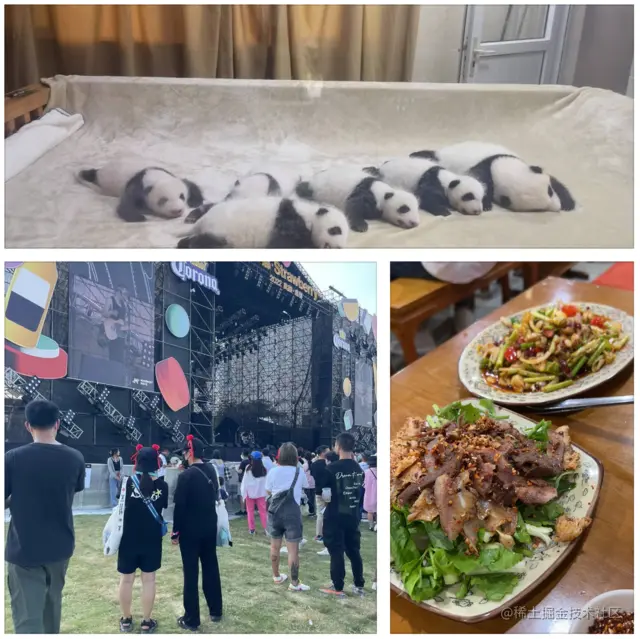 本来每年的 8、9 月份是公司团建的时间,大前年的泰国、前年的惠州以及去年的贵州,玩的都还可以。但今年由于降本增效,公司的团建也取消了。既然公司没有团建,但每年去一个没去过的地方旅行还是很有必要的。所以请了两天假,连着周末跟朋友一起去成都参加草莓音乐节也顺带看了国宝大熊猫。