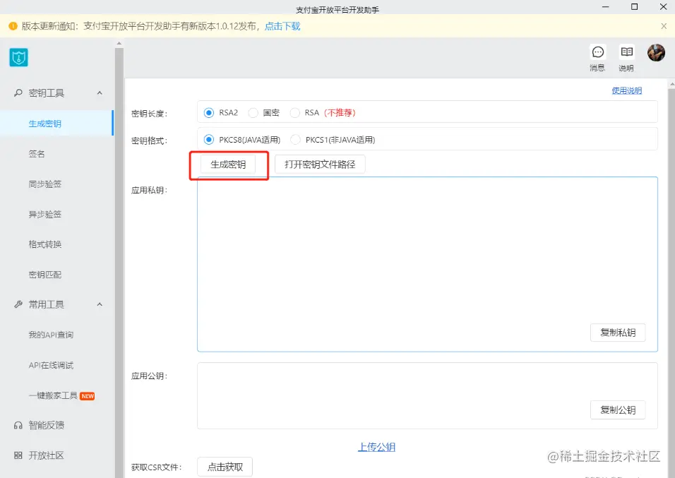 我们可以使用支付宝的开发助手来生成: