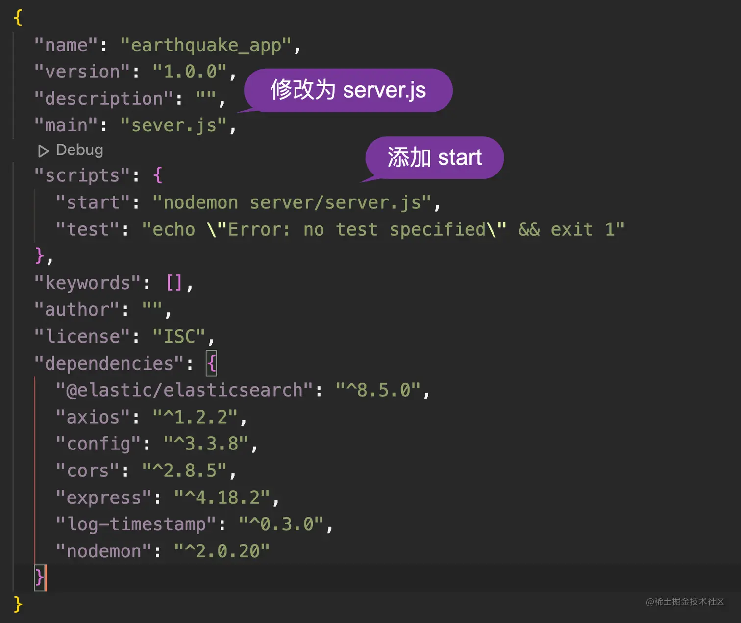 上述命令生成一个叫做 package.json 的文件。在以后安装的 packages,它也会自动添加到这个文件中。默认的设置显然不是我们想要的。我们需要对它做一些修改。