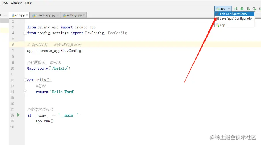 第二步 在create_app 里封窗 flask实例方法