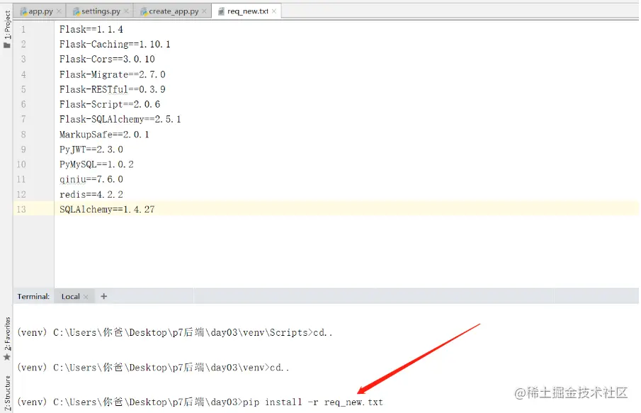 这样我们所需要的Flask的配置文件 就成功下载到了虚拟环境里