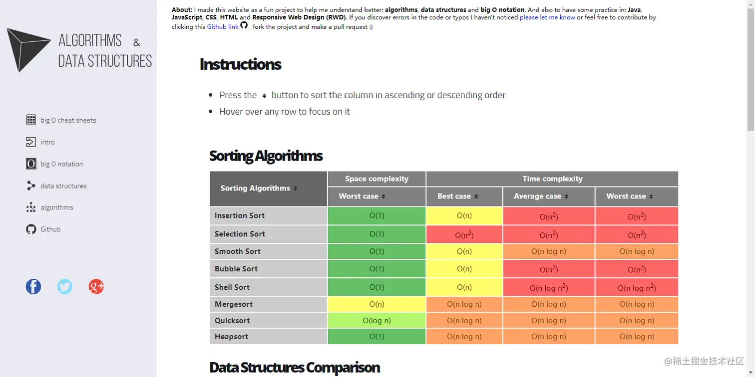 这也是一个可以查看算法分析的网站工具,功能相比bigocheatsheet,更丰富一些。