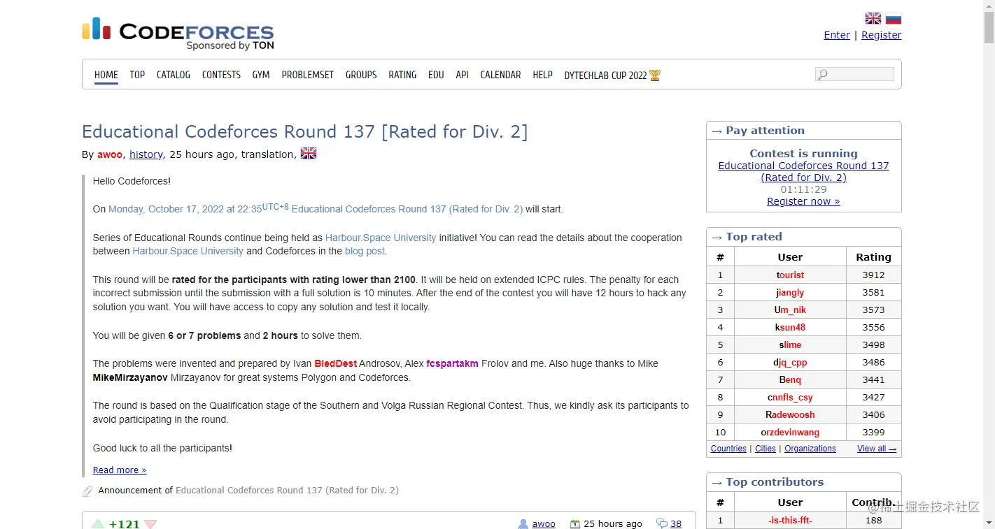 Codeforce每周会有2-3场比赛,感兴趣的小伙伴可以去挑战下~
