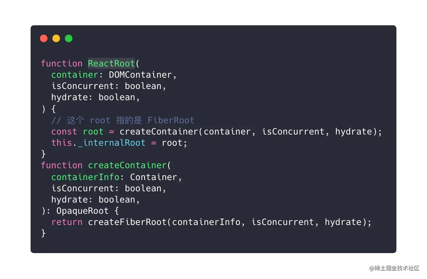 最后就是创建了一个 ReactRoot 对象并返回。接下来的内容中我们会看到好几个 root,可能会有点绕。