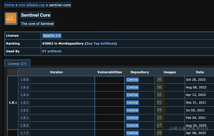 如果您未使用依赖管理工具,请到 Maven Center Repository 直接下载 JAR 包。