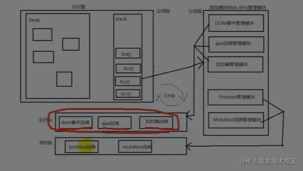每次去执行宏队列之前,都会确认微队列中是否有任务需要执行,有则优先执行微队列。否则就去执行宏队列