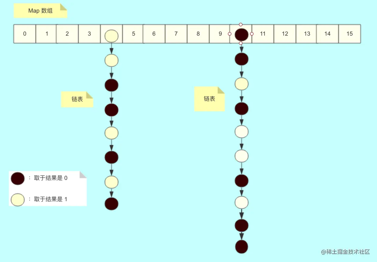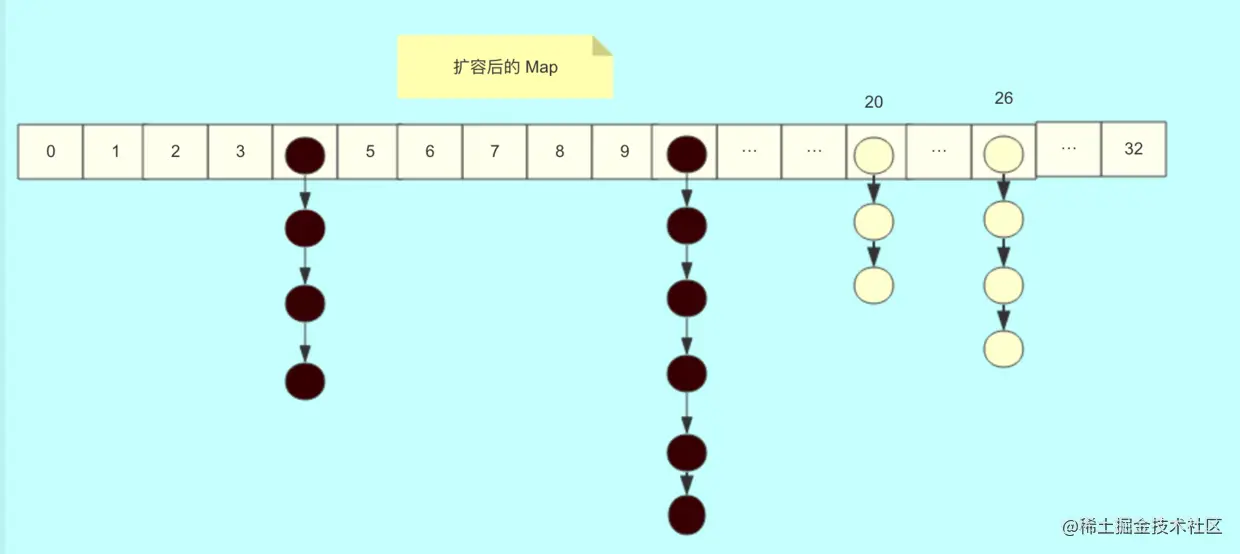 实际上,出现了树形结构,应该是该 Map 有扩容的考虑期望在里面,因为默认都是链表不足则先扩展大小,如果扩展大小后(大于64)依旧有新元素导致树化,即该 Map 具有较多的元素变更操作,可更关注于树形结构变更。这也近似于前面说到的思想,就好像跟偏向锁一样,总是偏向于某一种预定情况,而扩容检查则偏向于并发度高,操作频繁的。