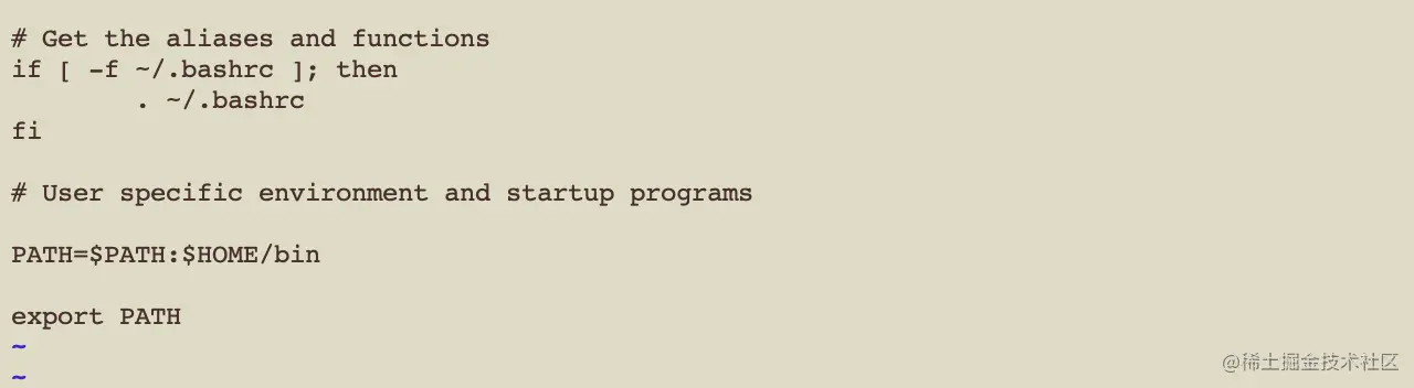 通过查看 ~/.bash_profile 中的代码可知,~/.bash_profile 会执行 ~/.bashrc,如图 2-7。