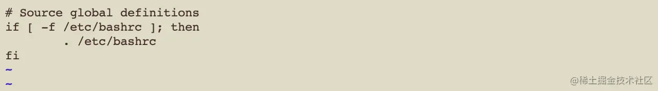 通过查看 ~/.bashrc 中的代码可知,~/.bashrc 会执行 /etc/bashrc,如图 2-8。