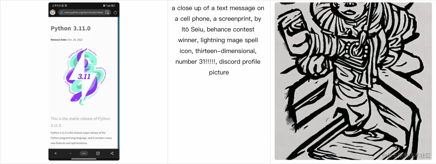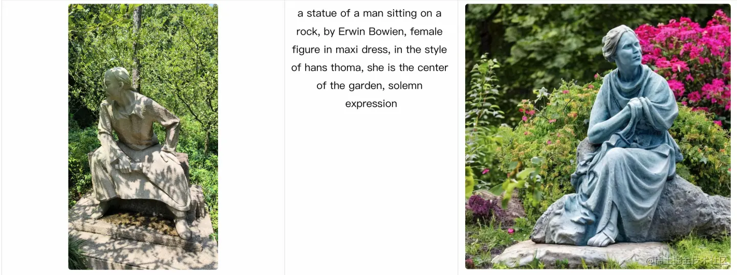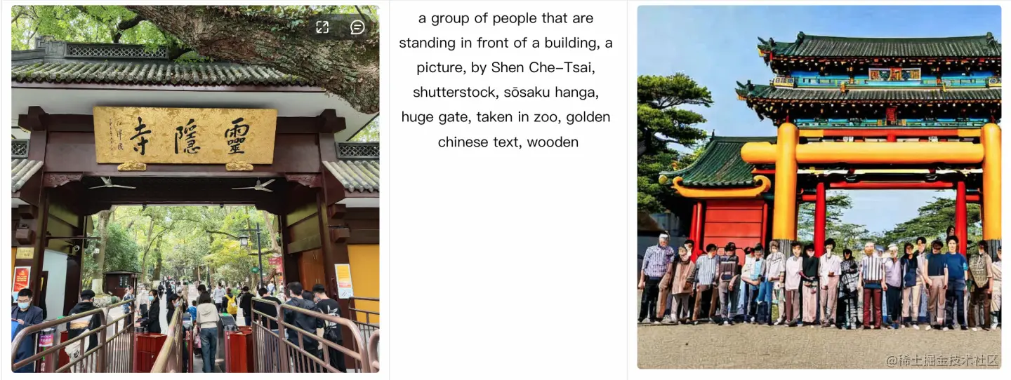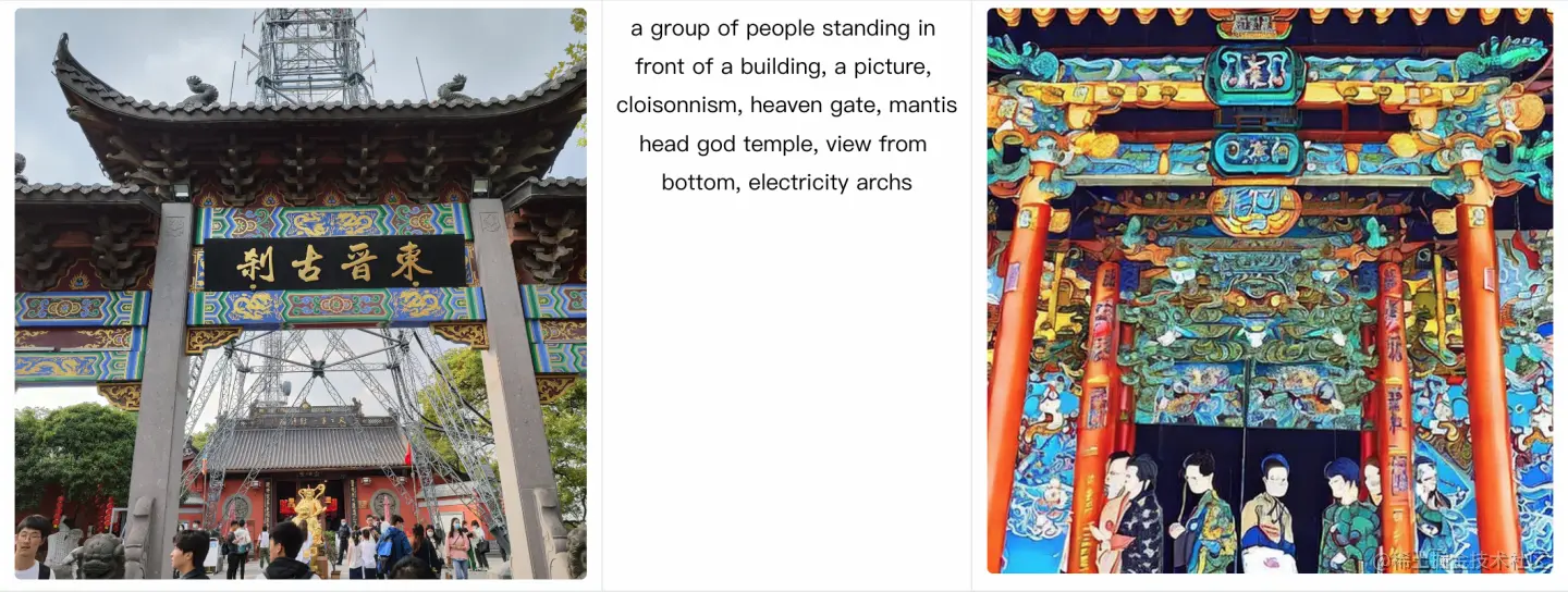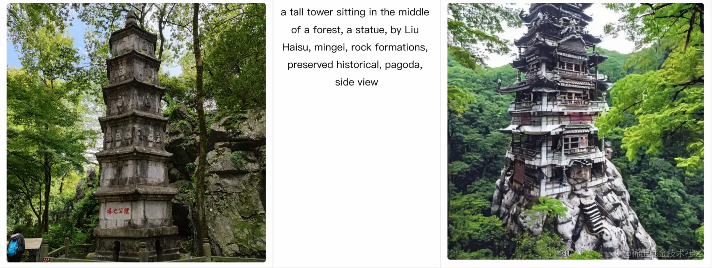 下面是一些例子,左边是我上传的原始图片,中间是CLIP Interrogator生成的图像描述,右边是Stable Diffusion 2生成的图像: