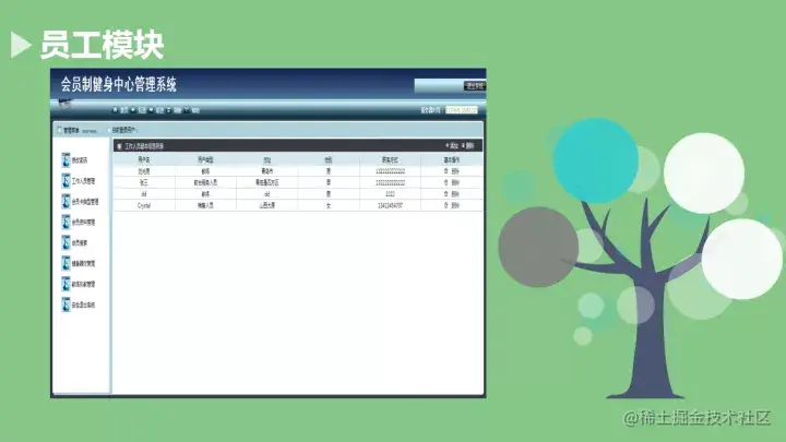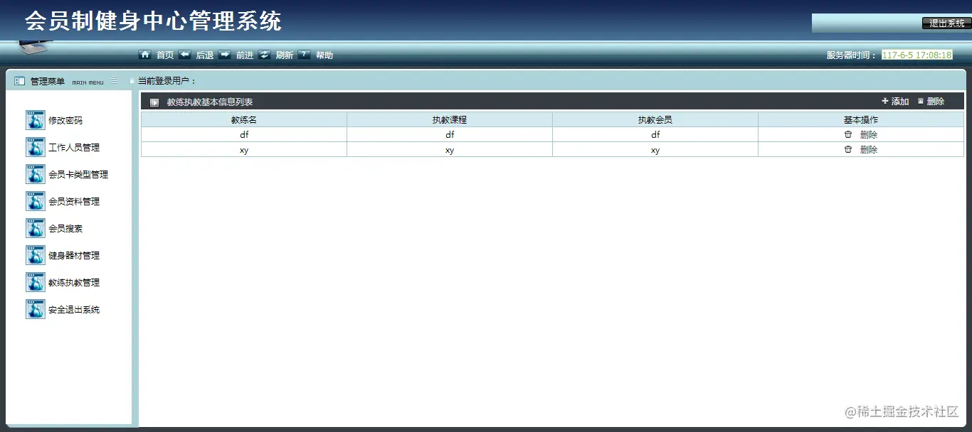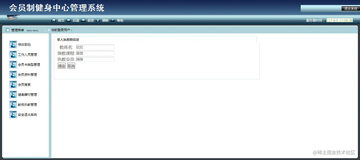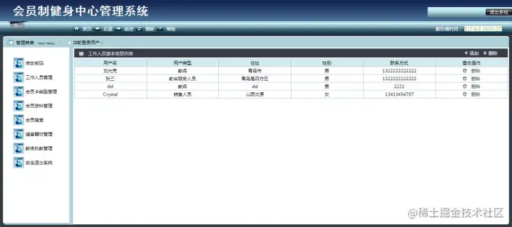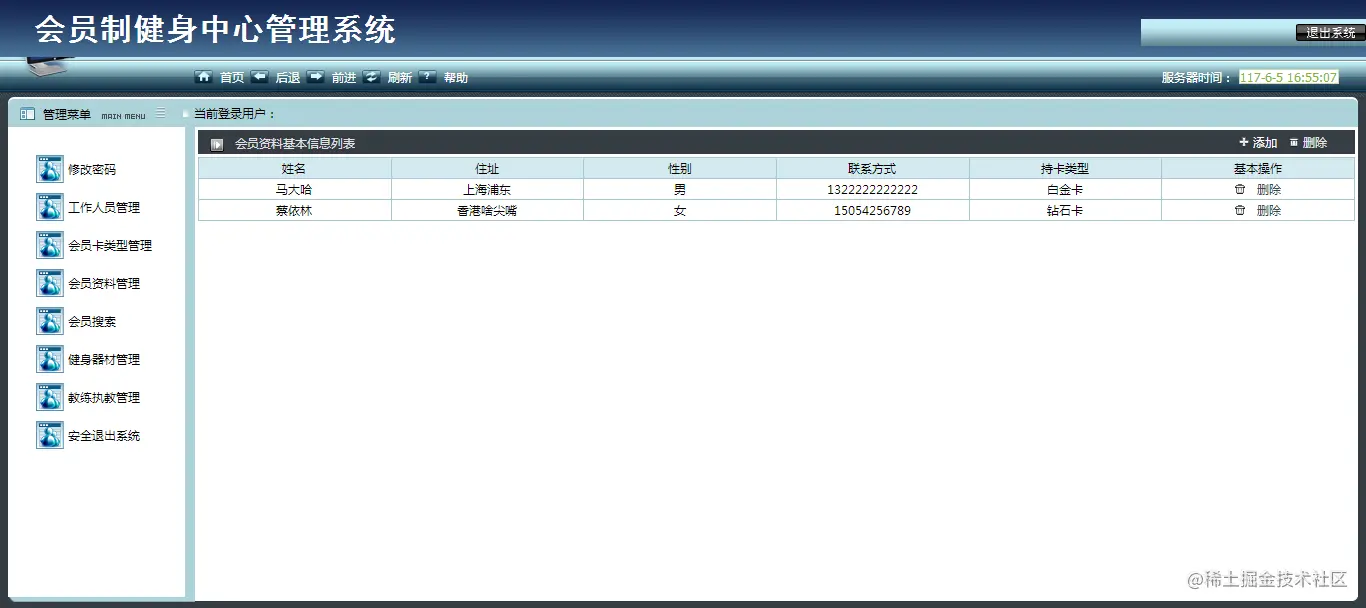 Design and implementation of information management systems to be designed according to the club management to customers and its employees actual situation. To better facilitate the club for customers, employees and fitness facilities for centralized management. The information management system includes functionality for: modify login password, member type management, staff management, member information management, fitness equipment management, coaching management, safe withdrawing.