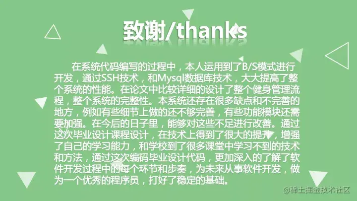 在本次毕业设计过程中,得到了指导老师的指导与支持。在此特老师的大力帮助。指导老师在数据库的搭建以及整体项目的把握上提供了非常有用的帮助,让我能够较快的理解整个系统的意义,并且利用所学知识完成设计,虽然程序仍然有一些不是很完美的地方,但是仍然能让我学到很多东西,在各个方面对自己都有所提高。