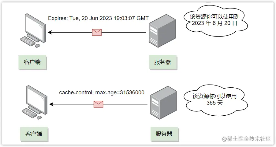 浏览器再次请求访问服务器中的该资源时,根据请求资源的时间与 Cache-Control 中设置的过期时间大小,计算出该资源是否过期,