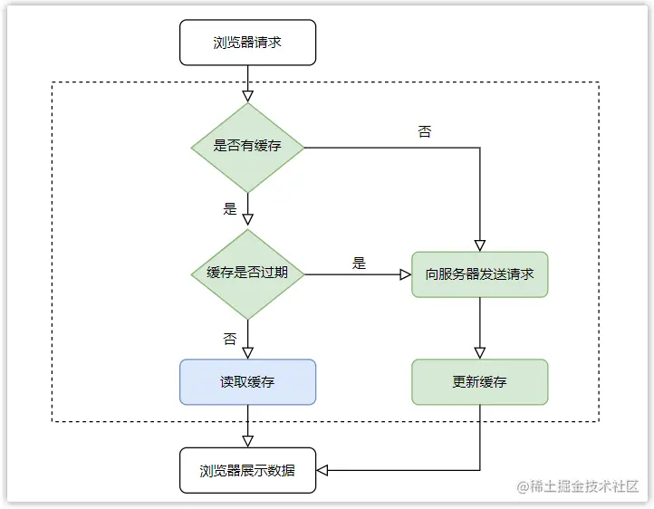 - 如果没有过期(且 Cache-Control 没有设置 no-cache 属性和 no-store 属性),则使用该缓存,结束;