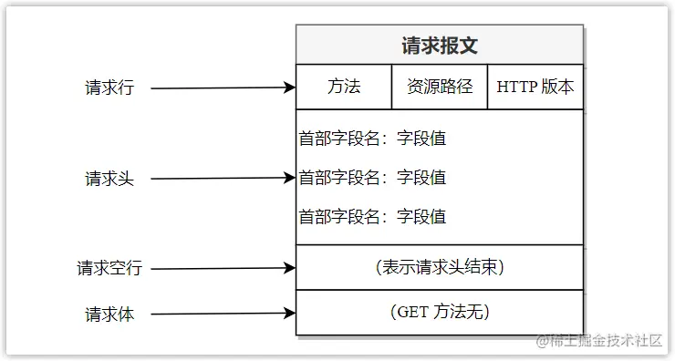 客户端向服务器端发送的信息称为请求报文,一般结构如下: