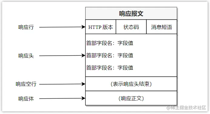 服务器向客户端发送的信息称为响应报文,响应报文的结构一般如下: