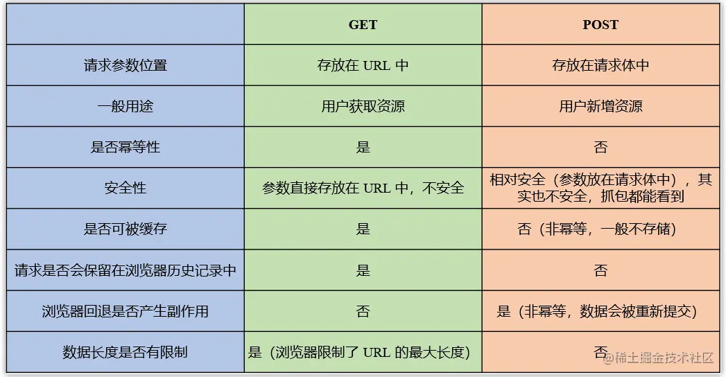 首先,一般 GET 请求参数存放在 URL 中,而 POST 请求参数存储在请求体中。