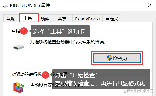 第3步: 完成错误检查后,就可以进行U盘格式化了。