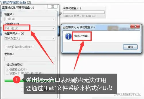 第4步: 这时要通过【Fat】文件系统来格式化U盘了。