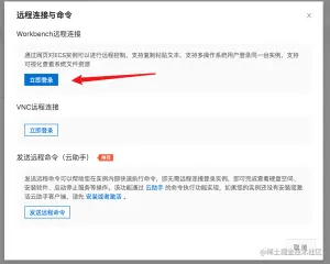 - 厂商提供的控制台界面登陆:Workbench和VNC,这种方法对于不经常登陆服务器运维的人来说,还是可以的,但是不推荐交互比客户端的感觉差一些。