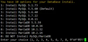运行脚本后,首先会让你选择数据库的版本,没有特殊需要,建议使用默认配置,直接回车或输入序号再回车。
