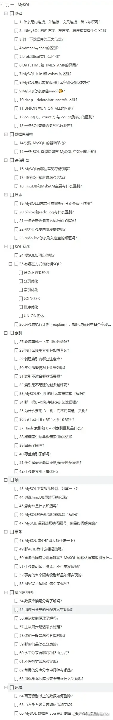 1.MySQL(66道)