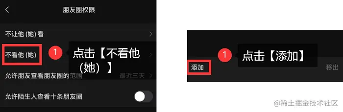 **步骤3:**点击【不看他(她)】,接着点击左下角的的【添加】。