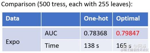 在Expo数据集上的实验结果表明,相比0/1展开的方法,使用LightGBM支持的类别特征可以使训练速度加速8倍,并且精度一致。更重要的是,LightGBM是第一个直接支持类别特征的GBDT工具。