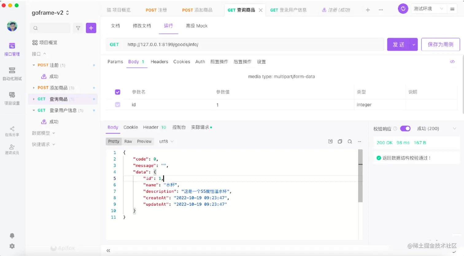 我们请求接口,添加数据看一下: