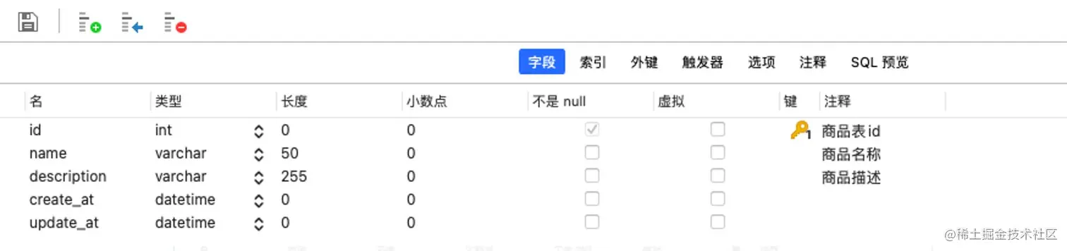 2.1 创建goods表如下: