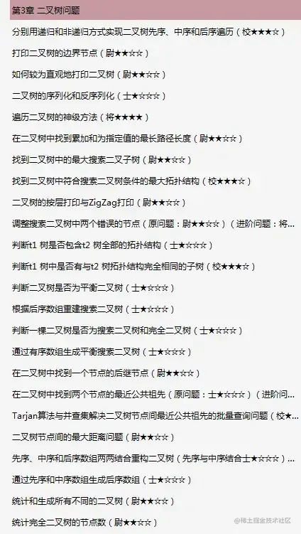 由于题目和解析加起来实在是太多了,只能展示目录和部分内容,每个题目都用星星标明了难度,大家可以针对性的选择刷题,**需要学习数据结构和算法方面的朋友, 由于整个笔记比较全面,内容相当的多 ,这里仅展示资料的一些截图,[需要完整版的点击此处即可免费获取全部ikt4435 添加小助理即可免费获取