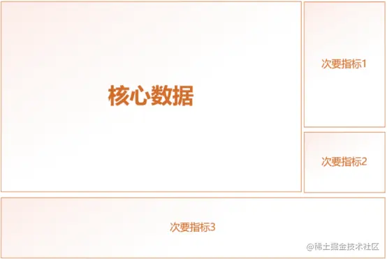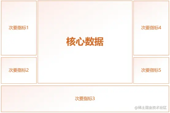 将重要指标和核心数据放在中间,次要和辅助的数据指标放在两边或者周围,基本遵循下图中的设计大原则。